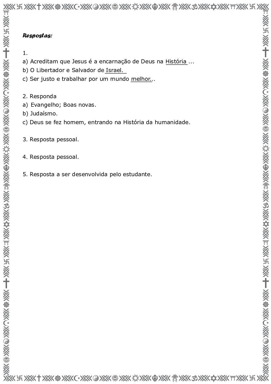 Unidade temática: Crenças religiosas e filosofias de vida.