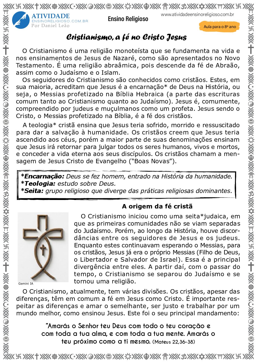 Habilidades: (EF08ER02) Analisar filosofias de vida, manifestações e tradições religiosas destacando seus princípios éticos. (EF08ER03) Analisar doutrinas das diferentes tradições religiosas e suas concepções de mundo, vida e morte.