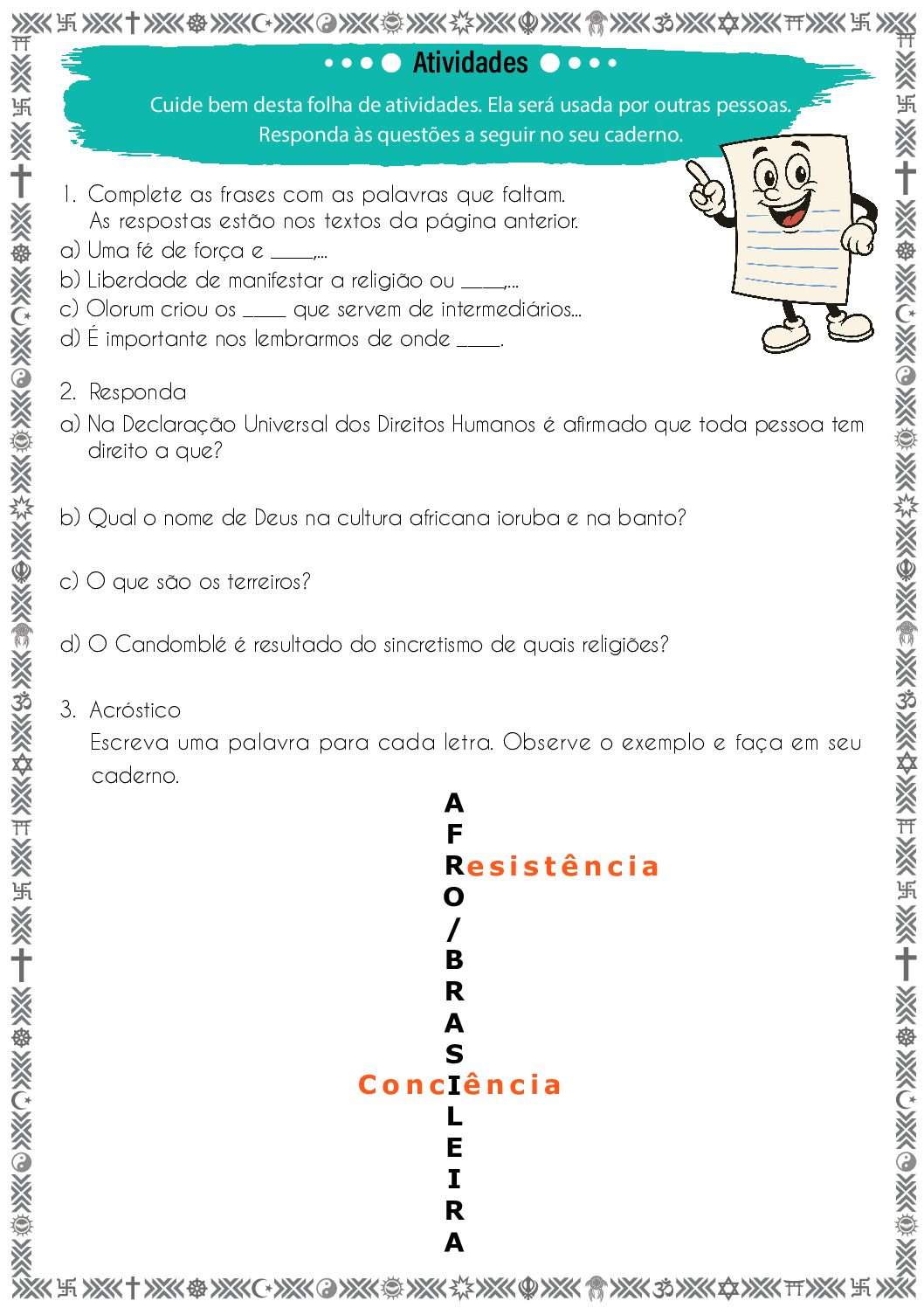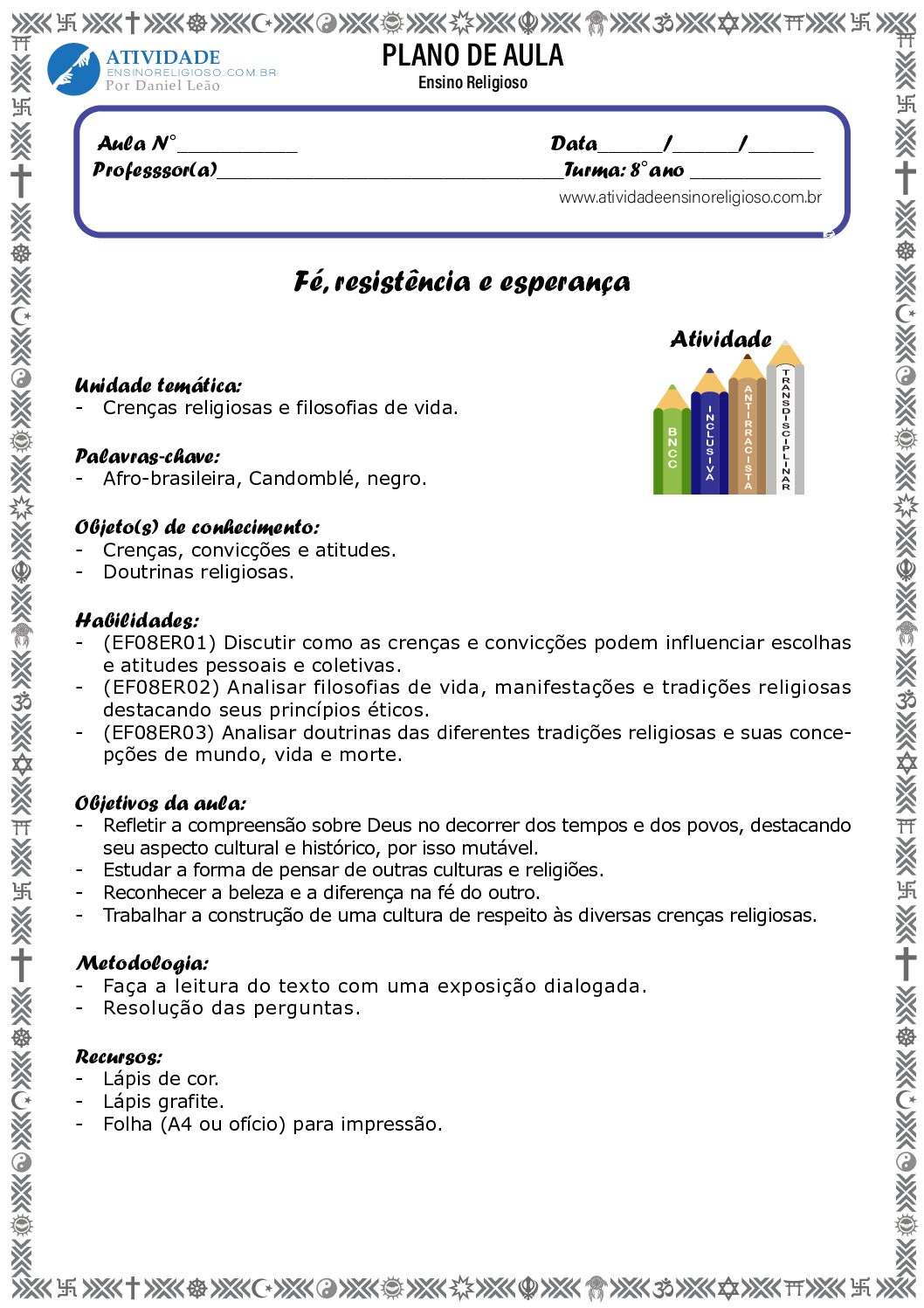 Unidade temática: Crenças religiosas e filosofias de vida.