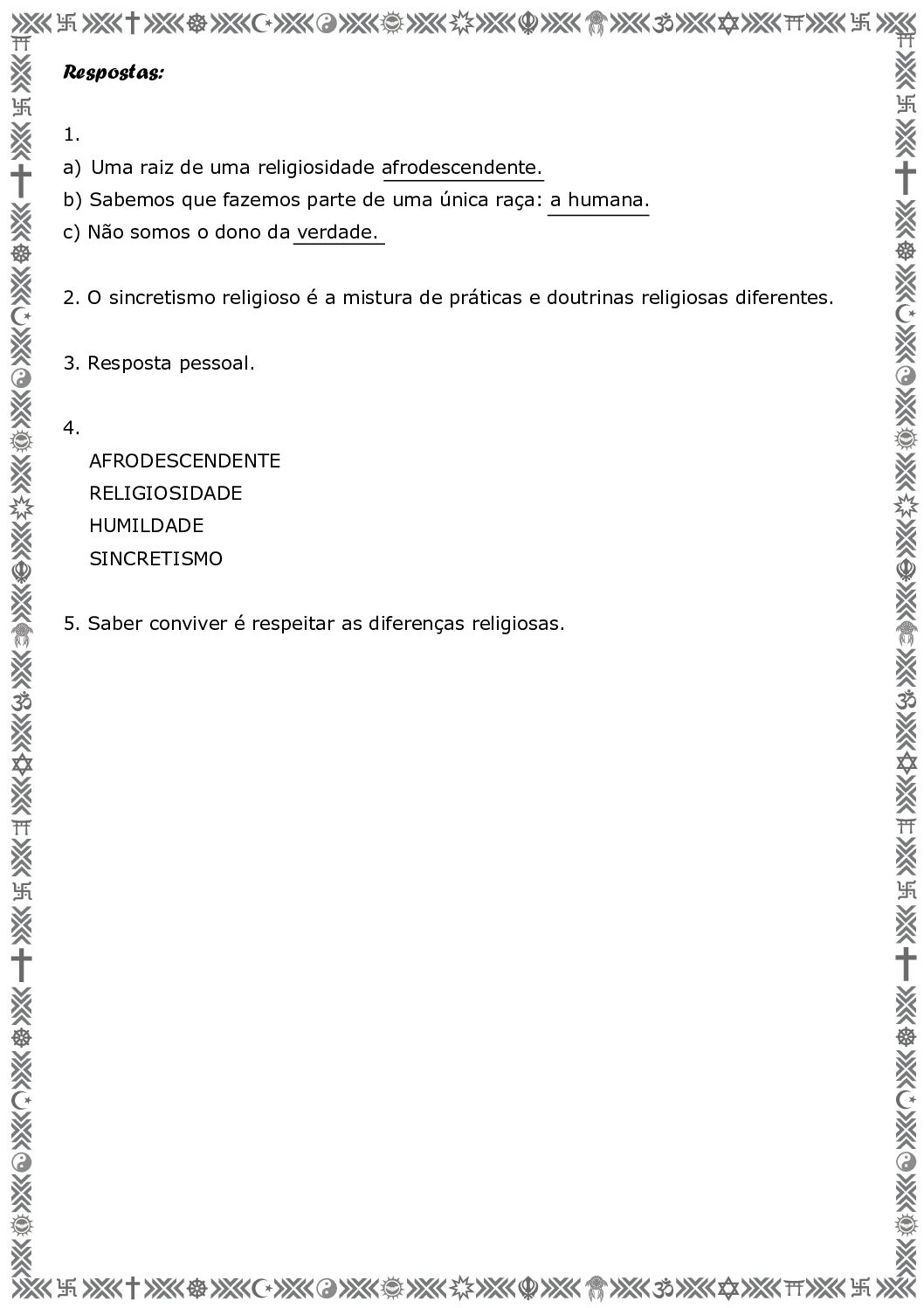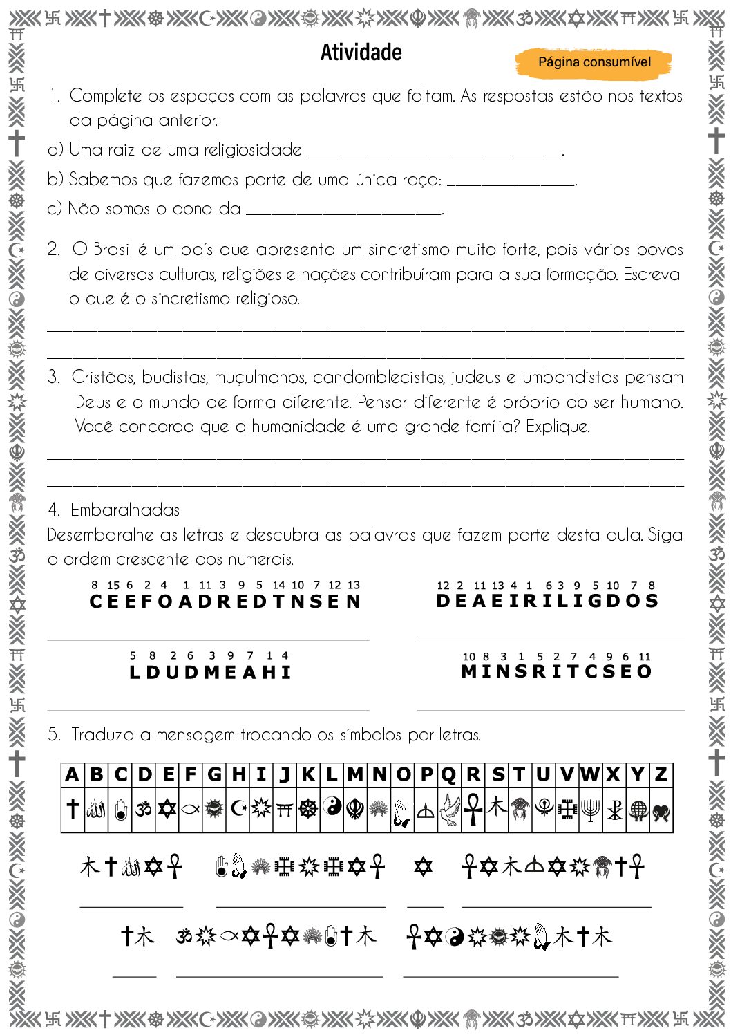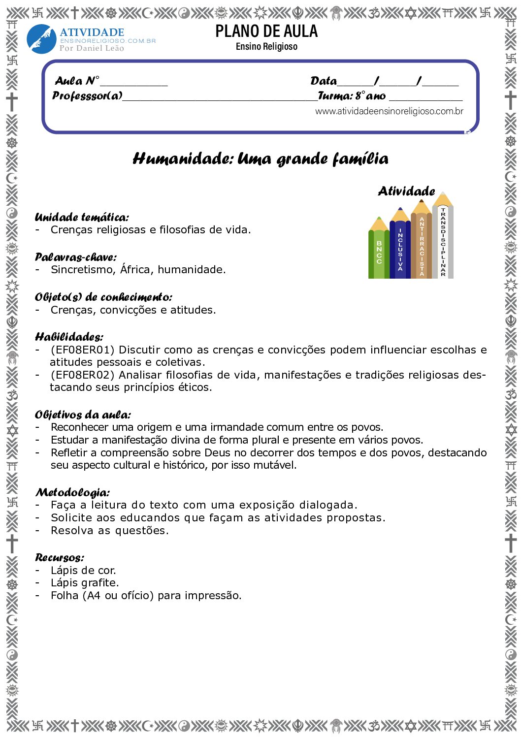 Unidade temática: Crenças religiosas e filosofias de vida.