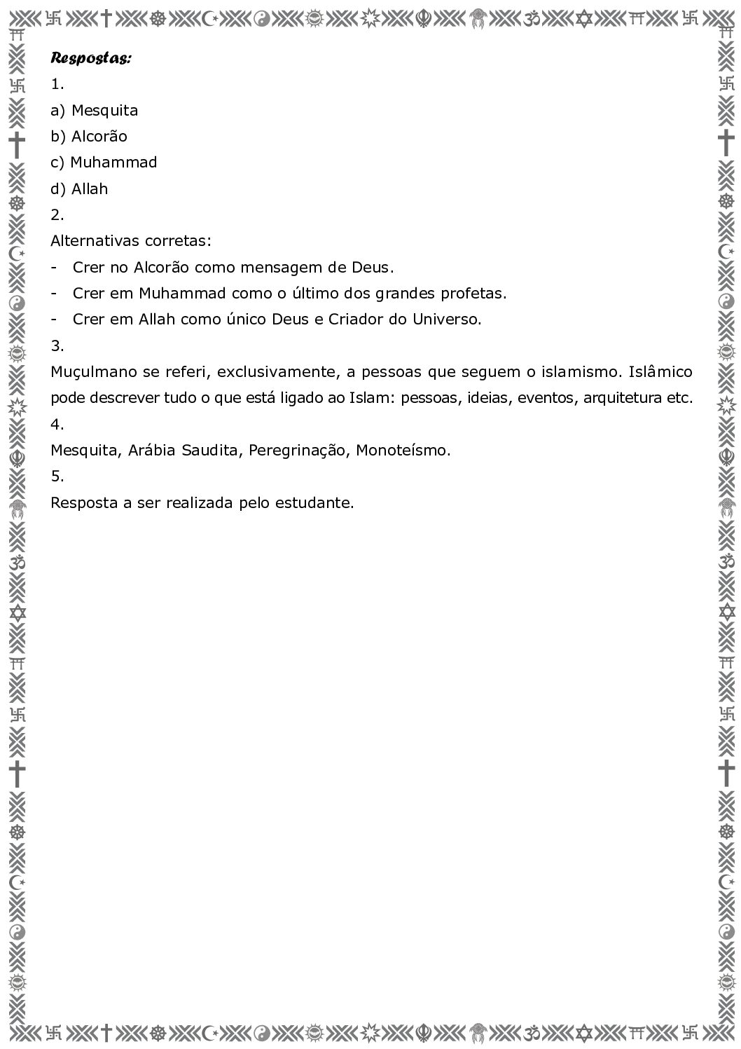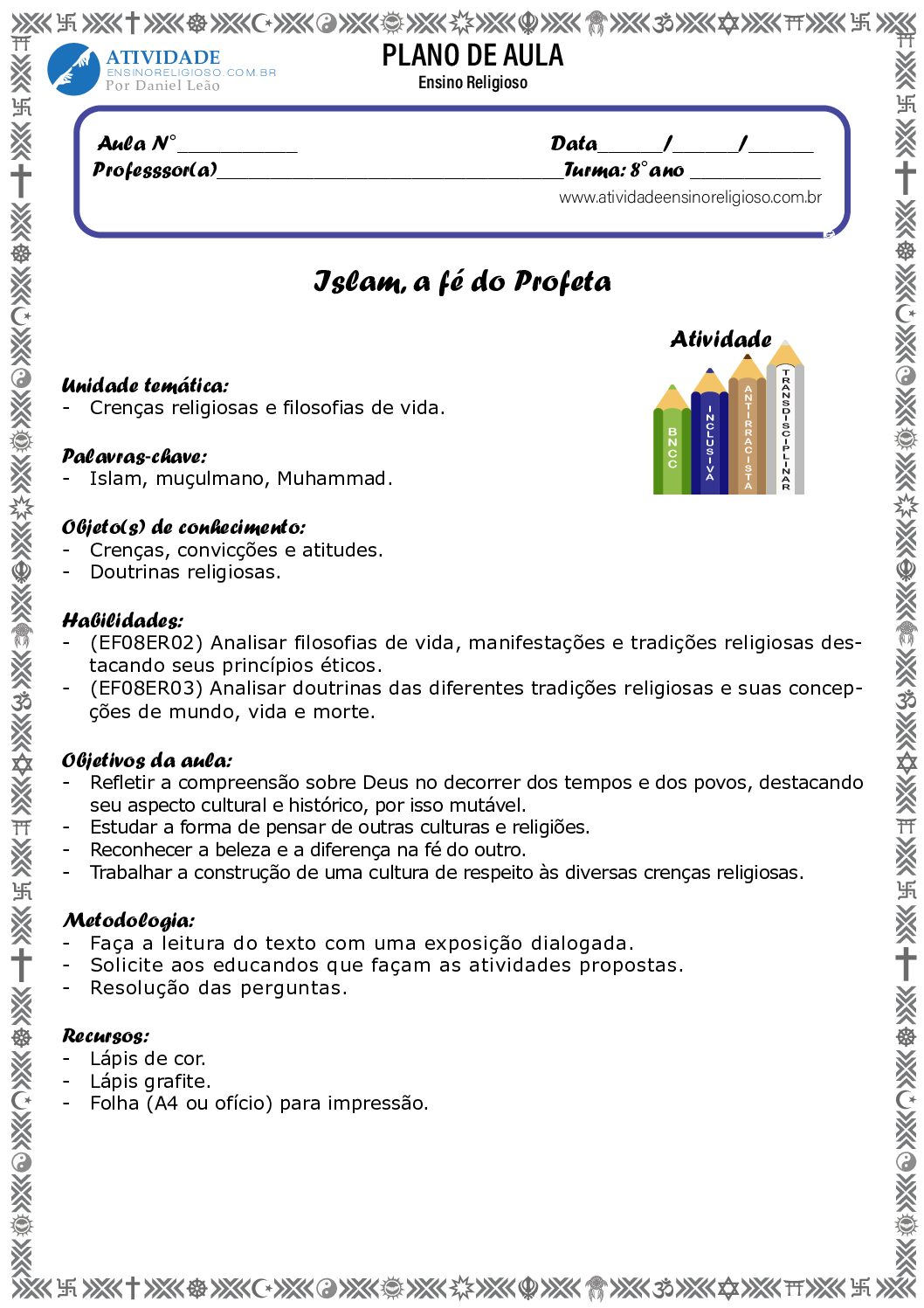 Unidade temática: Crenças religiosas e filosofias de vida.