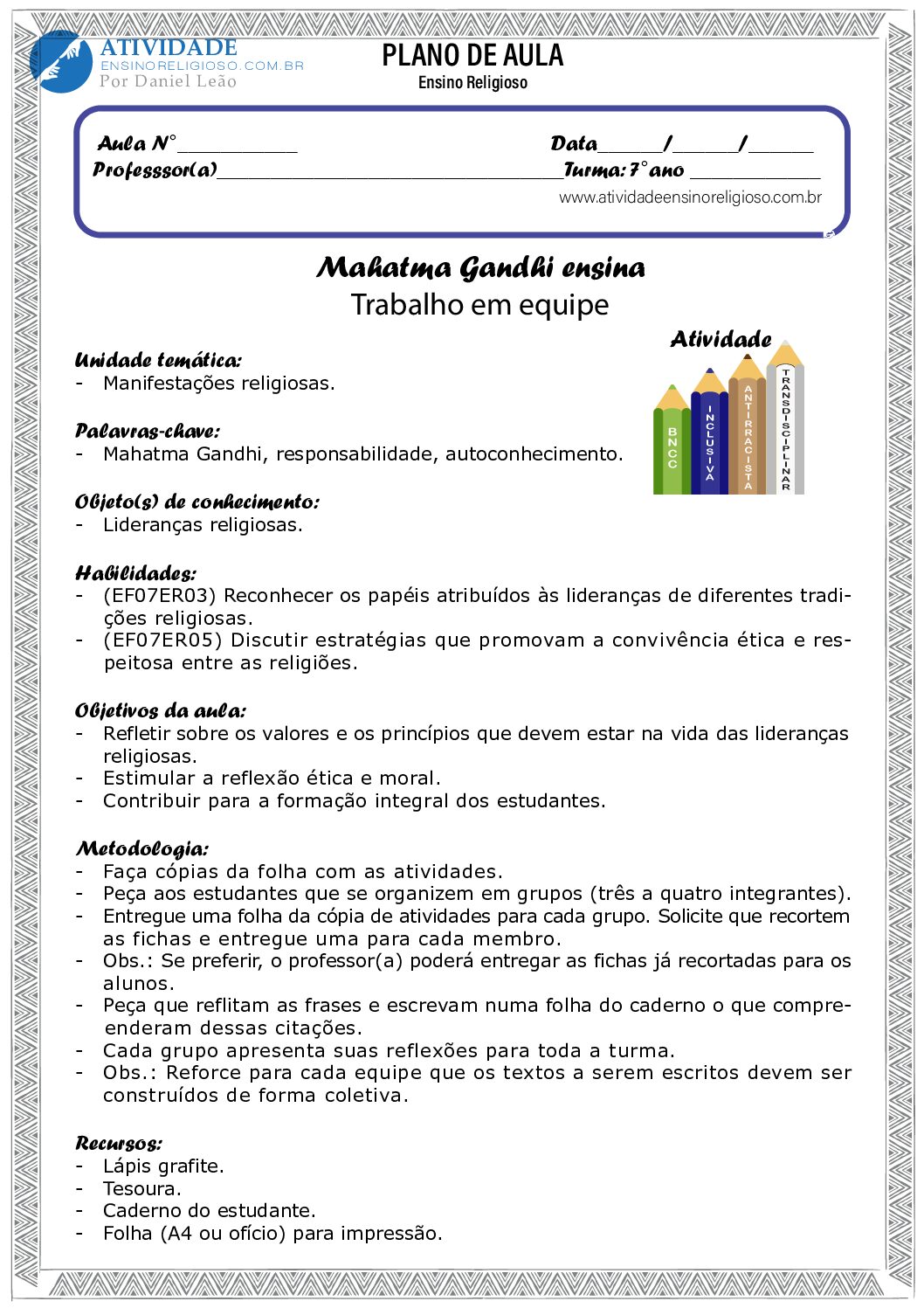 Habilidades: (EF07ER03) Reconhecer os papéis atribuídos às lideranças de diferentes tradições religiosas. (EF07ER05) Discutir estratégias que promovam a convivência ética e respeitosa entre as religiões.