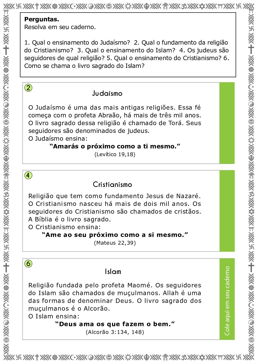 Habilidade: (EF05ER01) Identificar e respeitar acontecimentos sagrados de diferentes culturas e tradições religiosas como recurso para preservar a memória.